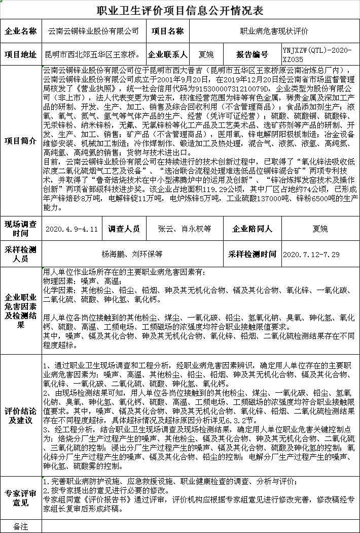 20-職業衛生(shēng)評價項目信息公開情況表YNJXZW(QTL)-2020-XZ035