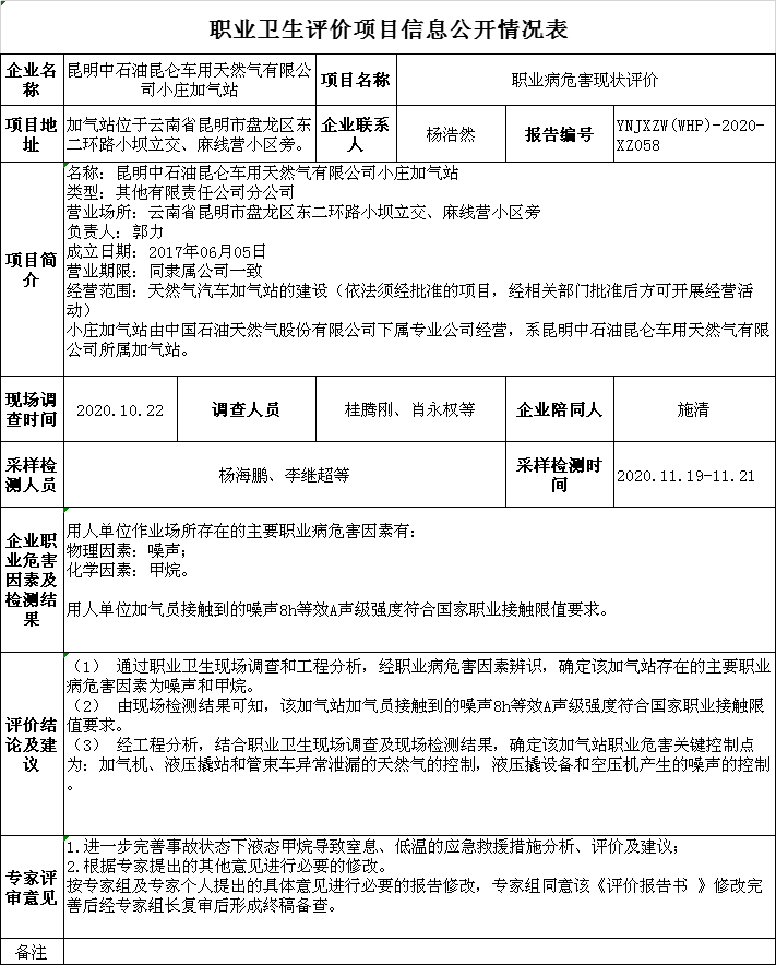 21-職業衛生(shēng)評價項目信息公開情況表YNJXZW(WHP)-2020-XZ058