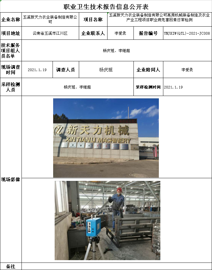 21-職業衛生(shēng)技術(shù)報告信息公開表YNJXZW(QTL)-2021-JC008