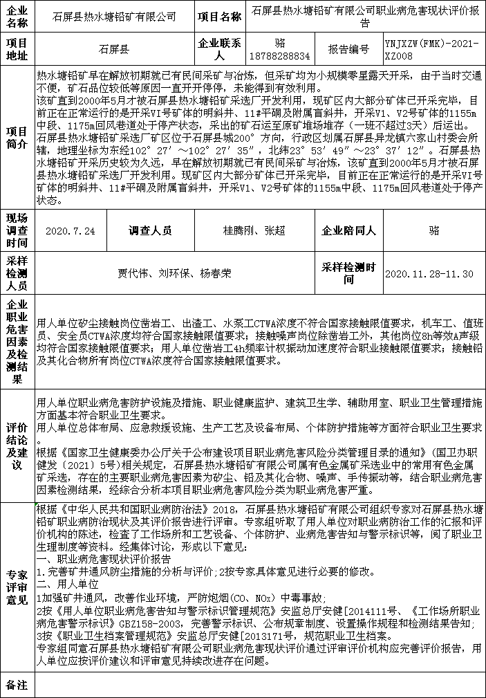 21-職業衛生(shēng)評價項目信息公開情況表YNJXZW(FMK)-2021-XZ008