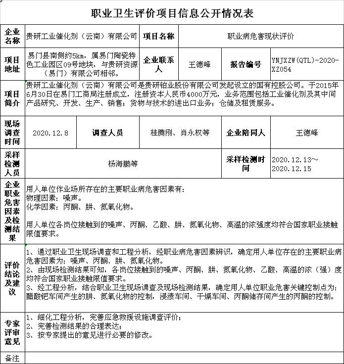21-職業衛生(shēng)評價項目信息公開情況表YNJXZW(QTL)-2020-XZ054