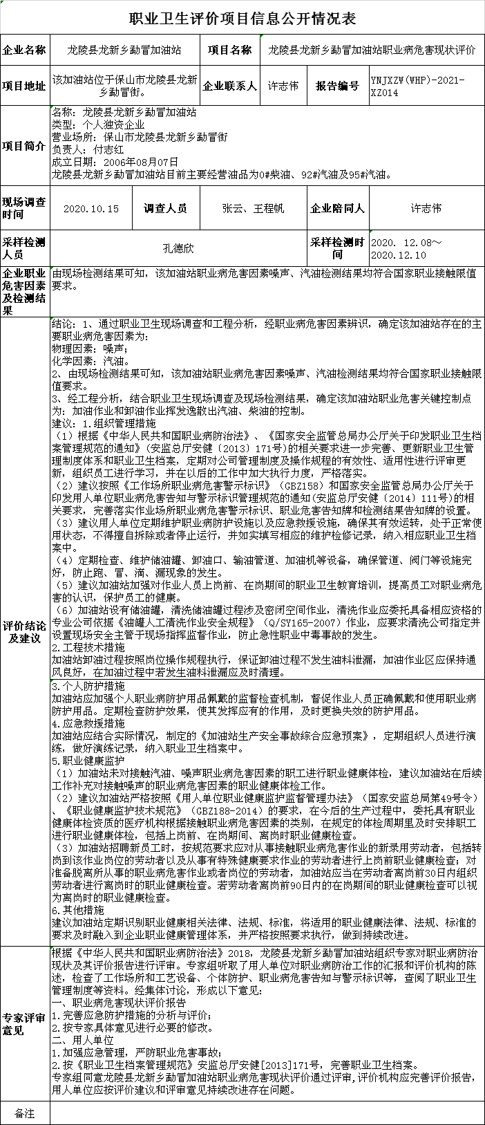 21-職業衛生(shēng)評價項目信息公開情況表-YNJXZW(WHP)-2021-XZ014