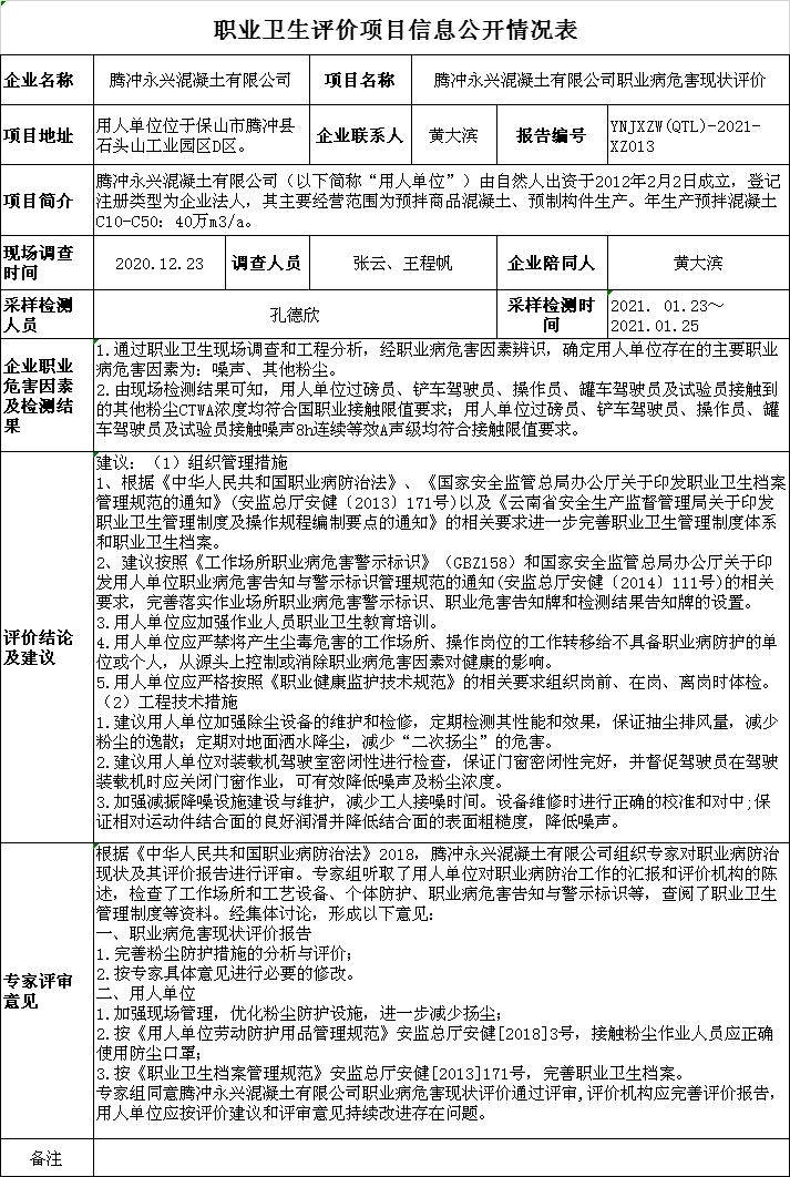 21-職業衛生(shēng)評價項目信息公開情況表-YNJXZW(QTL)-2021-XZ013