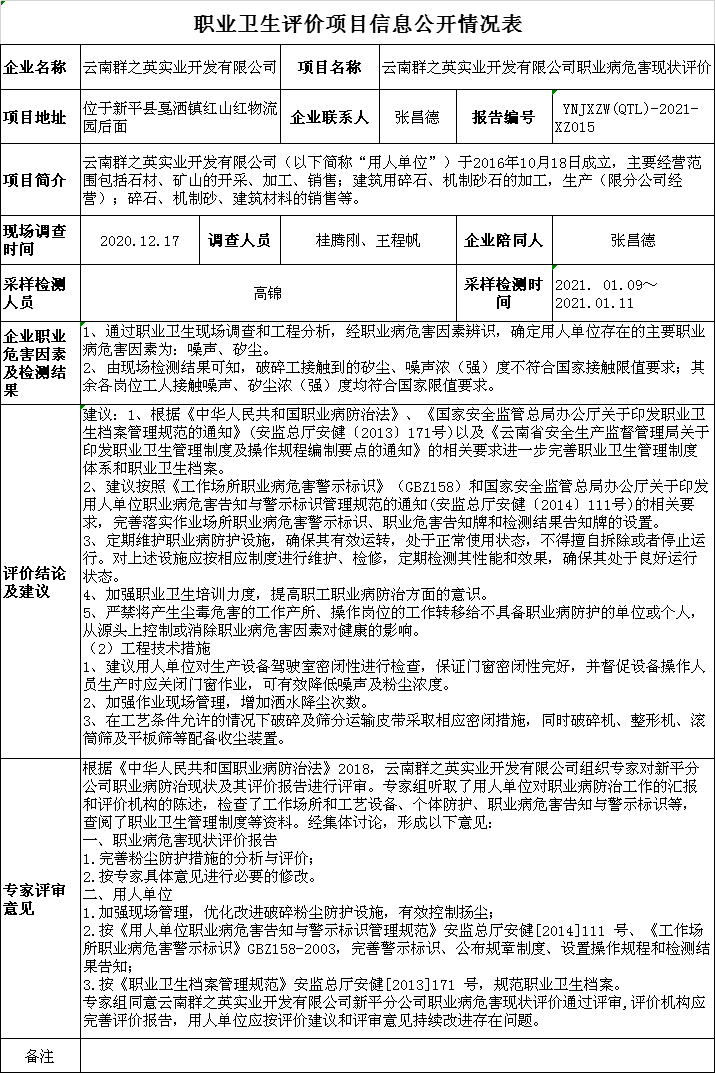 21-職業衛生(shēng)評價項目信息公開情況表-YNJXZW(QTL)-2021-XZ015