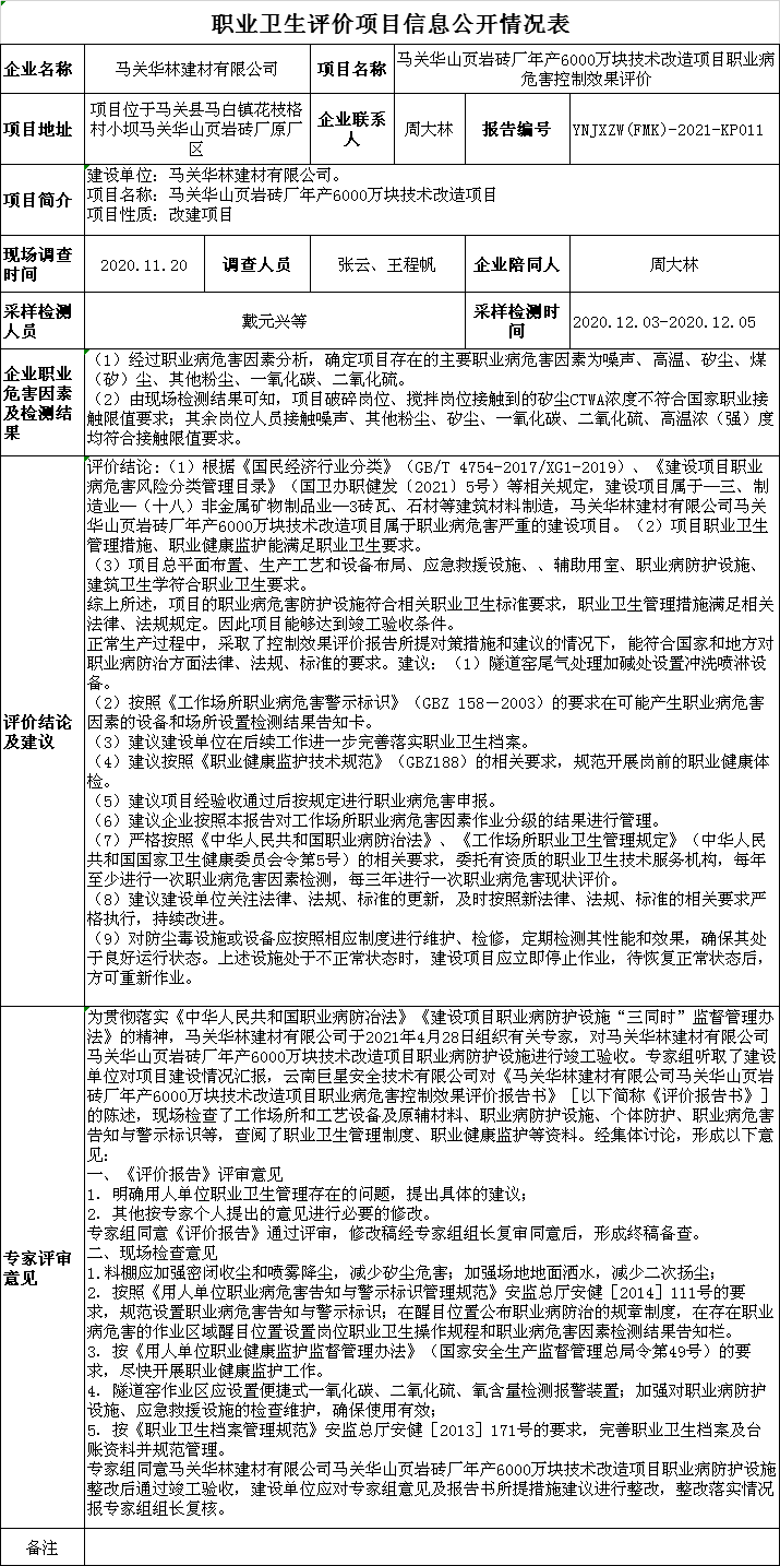 21-職業衛生(shēng)評價報告信息公開情況表YNJXZW(FMK)-2021-KP011