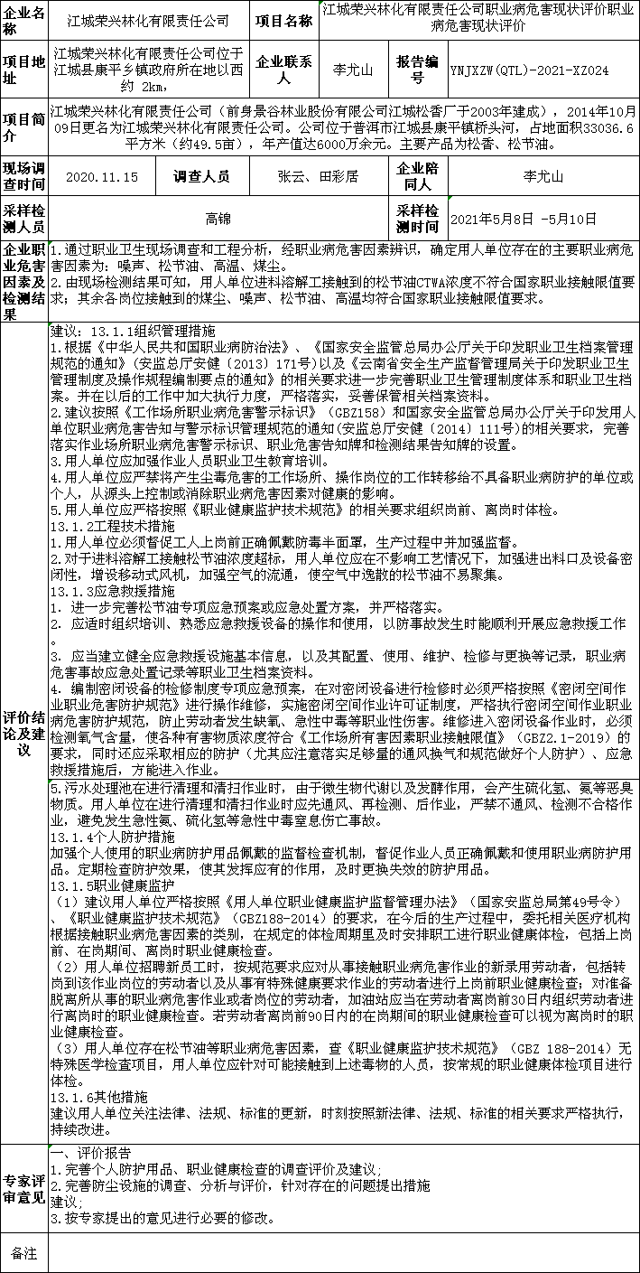 21-職業衛生(shēng)評價項目信息公開情況表YNJXZW(QTL)-2021-XZ024