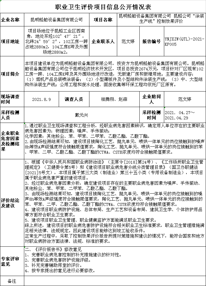 21-職業衛生(shēng)評價項目信息公開表-YNJXZW(QTL)-2021-KP005