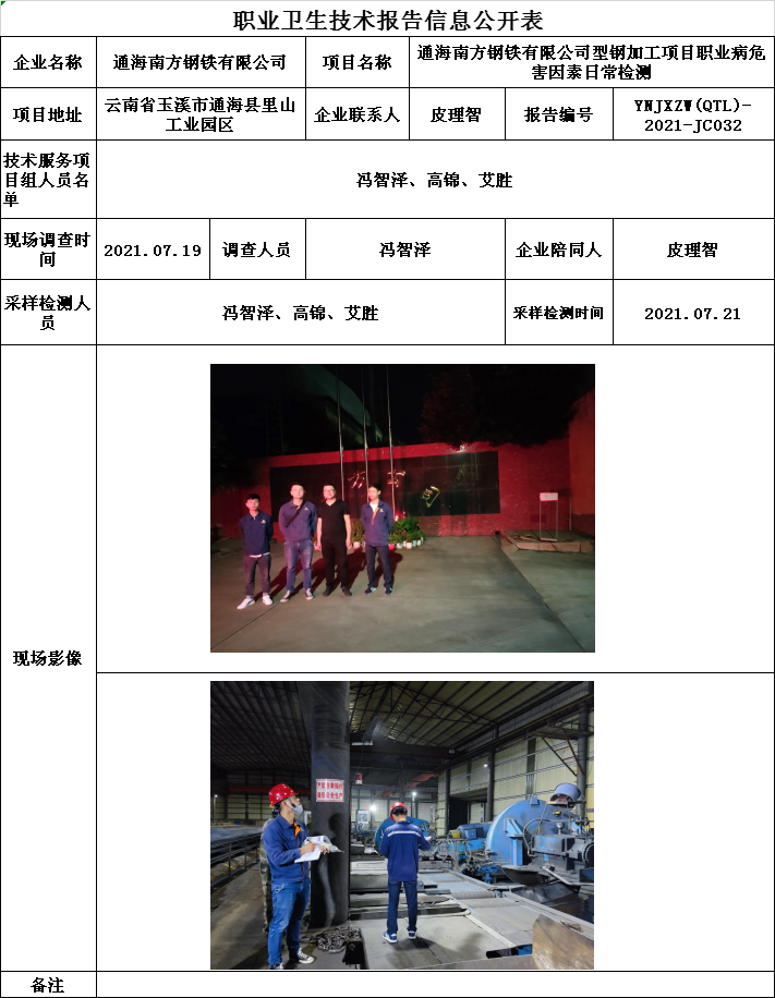 21-職業衛生(shēng)技術(shù)報告信息公開表YNJXZW(QTL)-2021-JC032