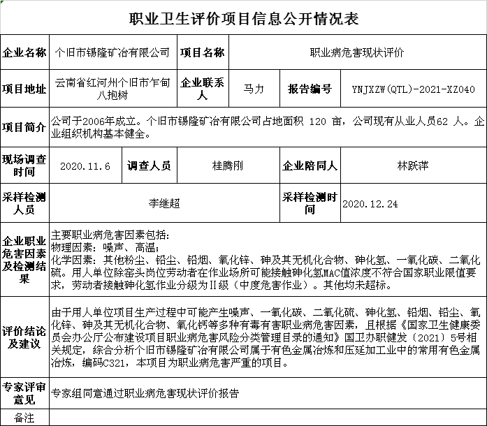 21-職業衛生(shēng)評價項目信息公開表YNJXZW(QTL)-2021-XZ040