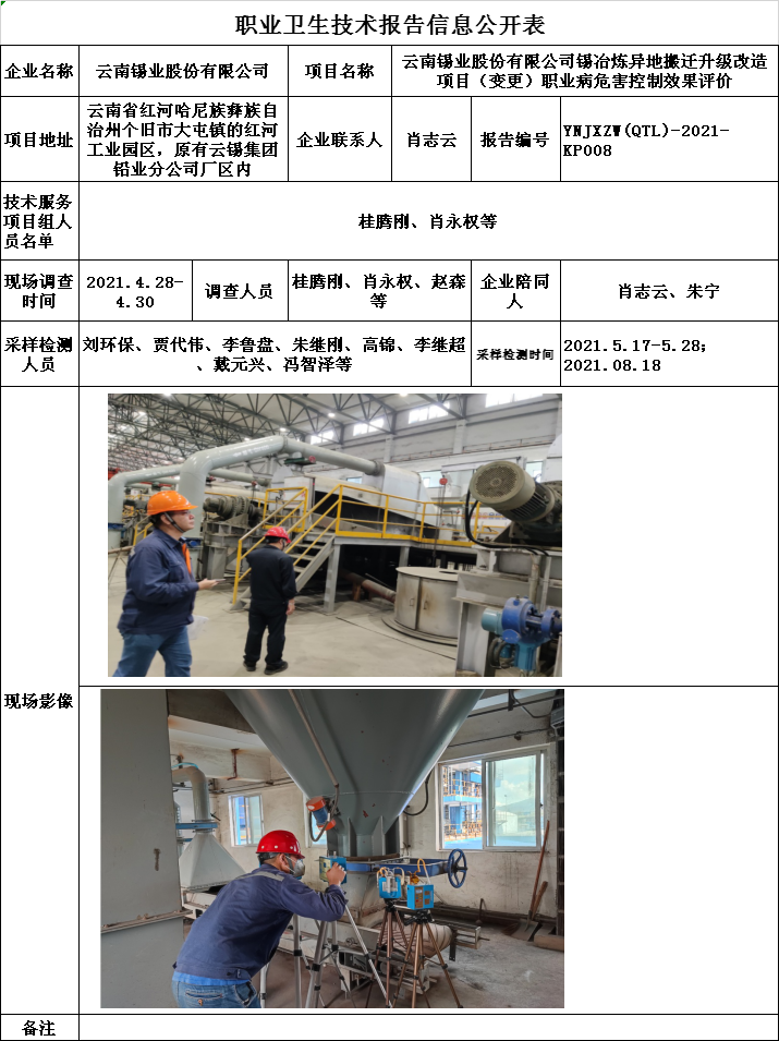 21-職業衛生(shēng)技術(shù)報告信息公開表YNJXZW(QTL)-2021-KP008