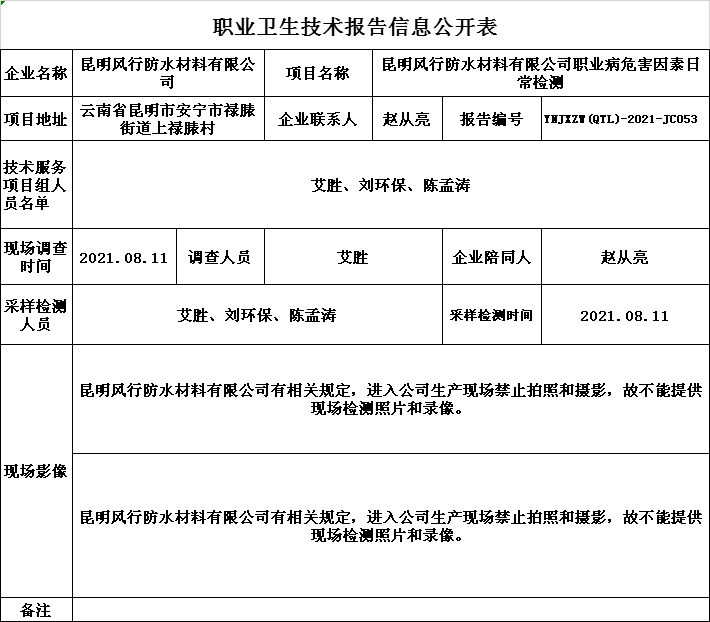 21-職業衛生(shēng)技術(shù)報告信息公開表YNJXZW(QTL)-2021-JC053