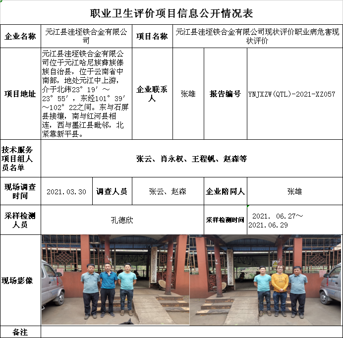 21-職業衛生(shēng)評價項目信息公開表YNJXZW(QTL)-2021-XZ057