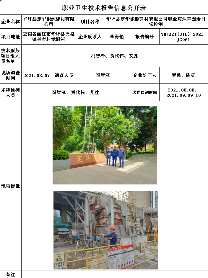 21-職業衛生(shēng)技術(shù)報告信息公開表YNJXZW(QTL)-2021-JC061