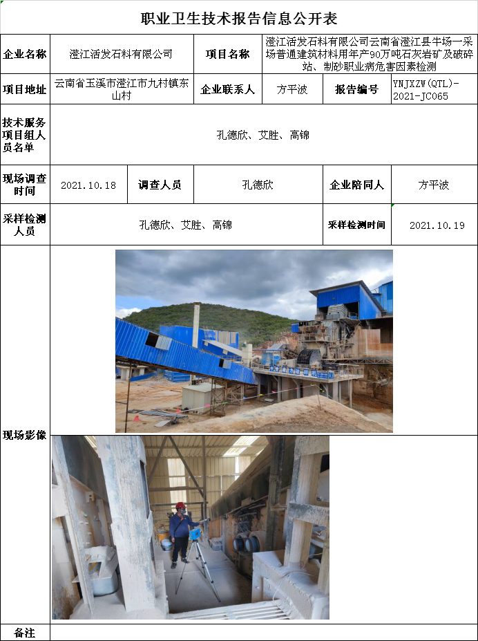 21-職業衛生(shēng)技術(shù)報告信息公開表YNJXZW(QTL)-2021-JC065