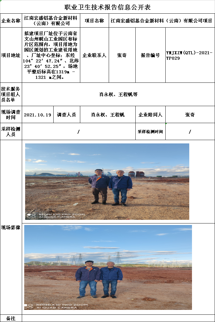 21-職業衛生(shēng)技術(shù)報告信息公開表YNJXZW(QTL)-2021-YP029