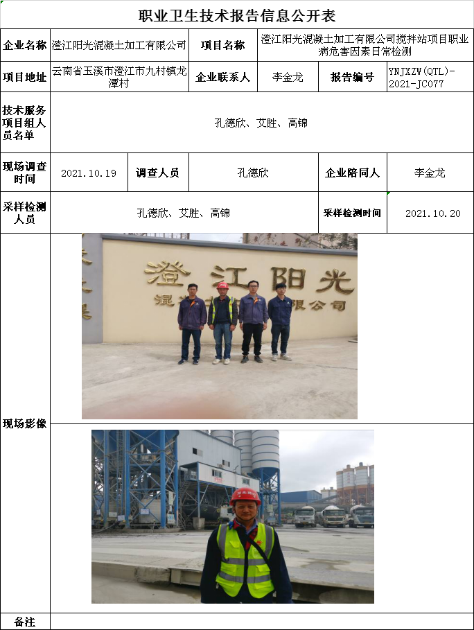21-職業衛生(shēng)技術(shù)報告信息公開表YNJXZW(QTL)-2021-JC077