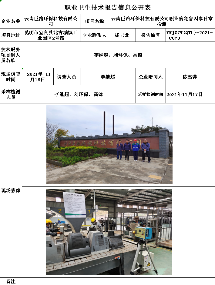 21-職業衛生(shēng)技術(shù)報告信息公開表YNJXZW(QTL)-2021-JC070