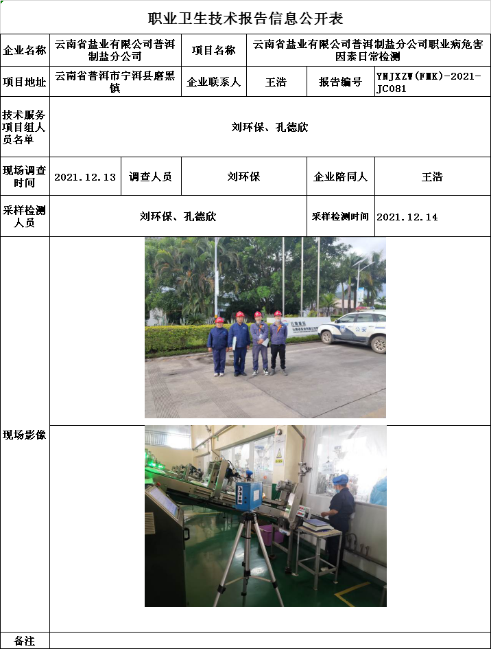 21-職業衛生(shēng)技術(shù)報告信息公開表YNJXZW(FMK)-2021-JC081