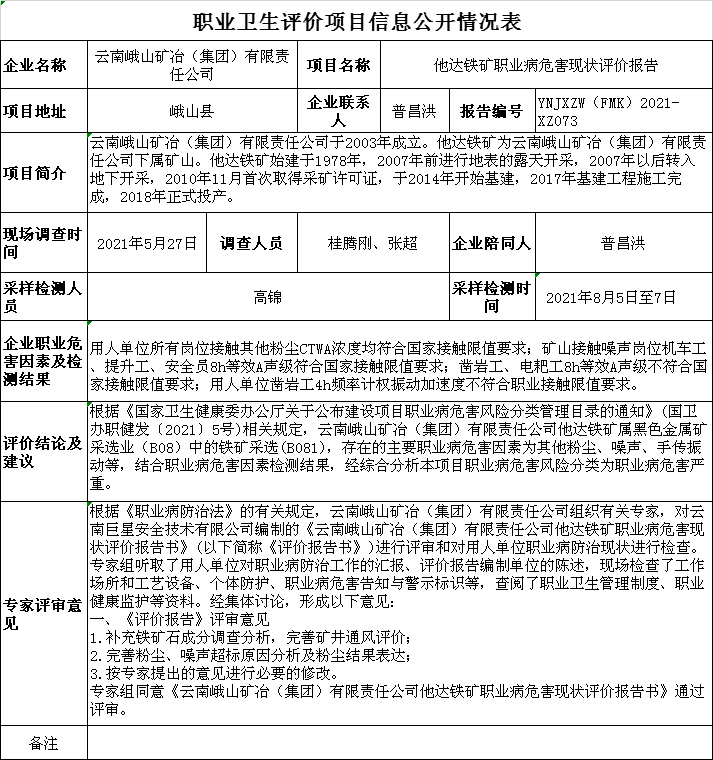 21-職業衛生(shēng)評價項目信息公開情況表YNJXZW(FMK)-2021-XZ073