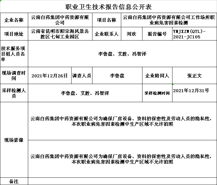 22-職業衛生(shēng)技術(shù)報告信息公開表YNJXZW(QTL)-2021-JC105