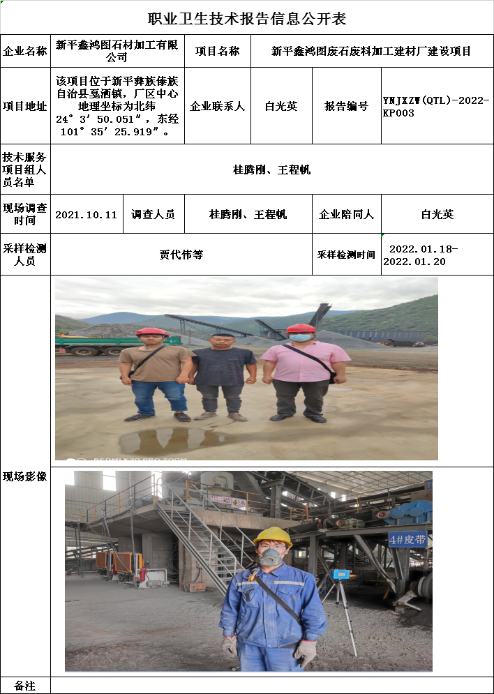22-職業衛生(shēng)技術(shù)報告信息公開表YNJXZW(QTL)-2022-KP003
