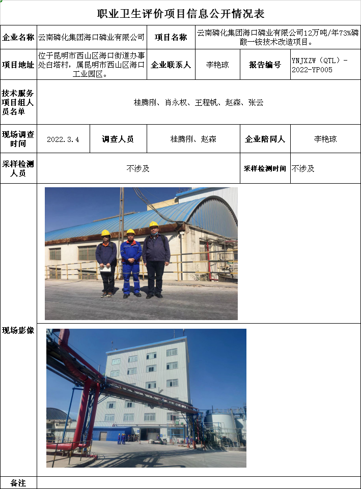 22-職業衛生(shēng)技術(shù)報告信息公開表YNJXZW(QTL)-2022-YP005