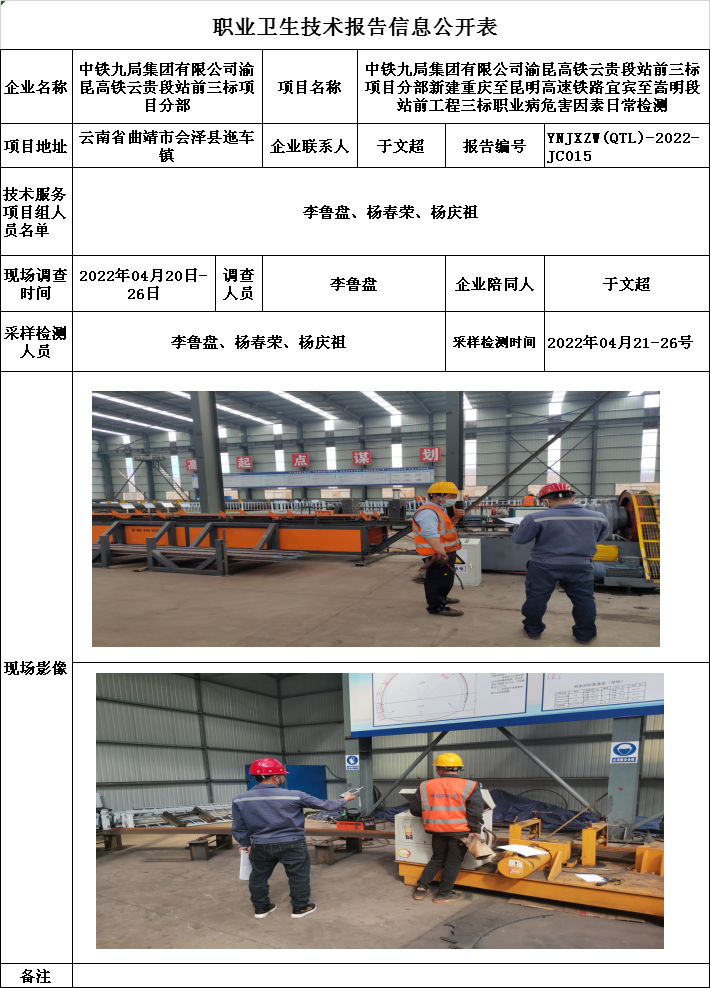 22-職業衛生(shēng)技術(shù)報告信息公開表YNJXZW(QTL)-2022-JC015