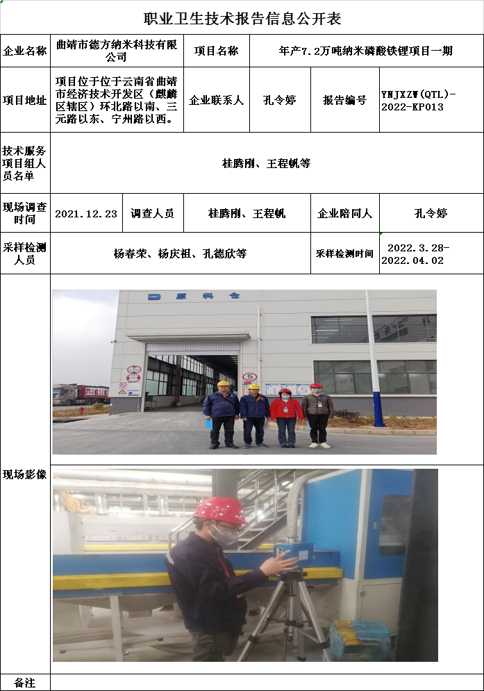 22-職業衛生(shēng)技術(shù)報告信息公開表YNJXZW(QTL)-2022-KP013