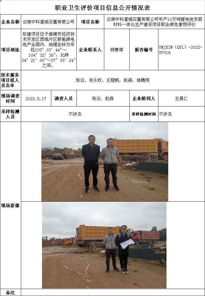 22-職業衛生(shēng)技術(shù)報告信息公開表YNJXZW(QTL)-2022-YP016