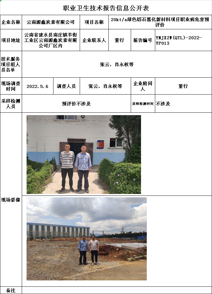 22-職業衛生(shēng)技術(shù)報告信息公開表YNJXZW(QTL)-2022-YP013