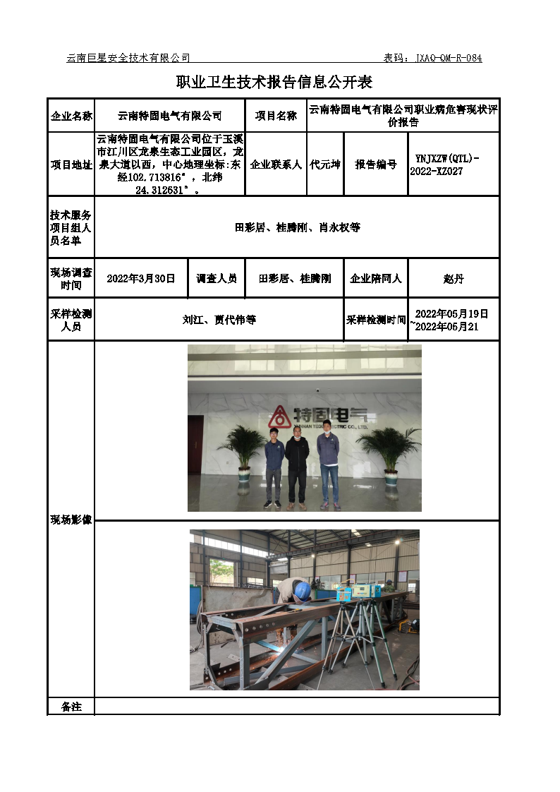 22-職業衛生(shēng)技術(shù)報告信息公開表YNJXZW(QTL)-2022-XZ027