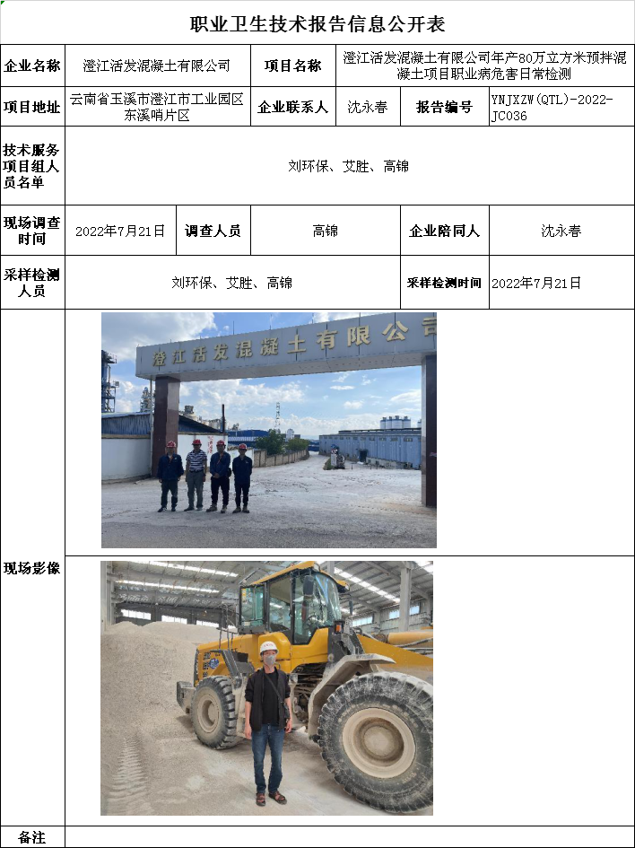 22-職業衛生(shēng)技術(shù)報告信息公開表YNJXZW(QTL)-2022-JC036