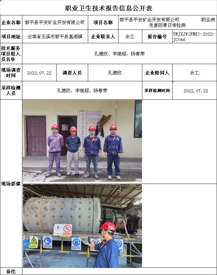 22-職業衛生(shēng)技術(shù)報告信息公開表YNJXZW(FMK)-2022-JC046