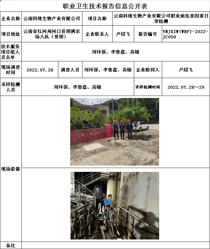 22-職業衛生(shēng)技術(shù)報告信息公開表YNJXZW(WHP)-2022-JC058