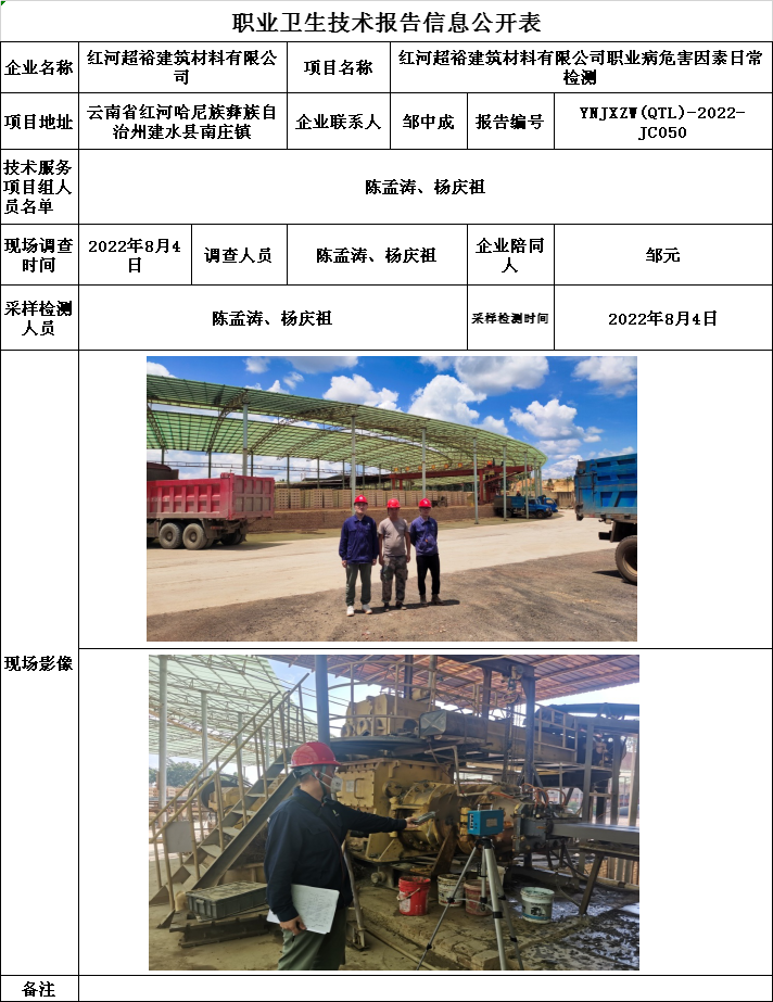 22-職業衛生(shēng)技術(shù)報告信息公開表YNJXZW(QTL)-2022-JC050