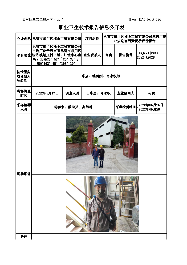 22-職業衛生(shēng)技術(shù)報告信息公開表YNJXZW(FMK)-2022-XZ028