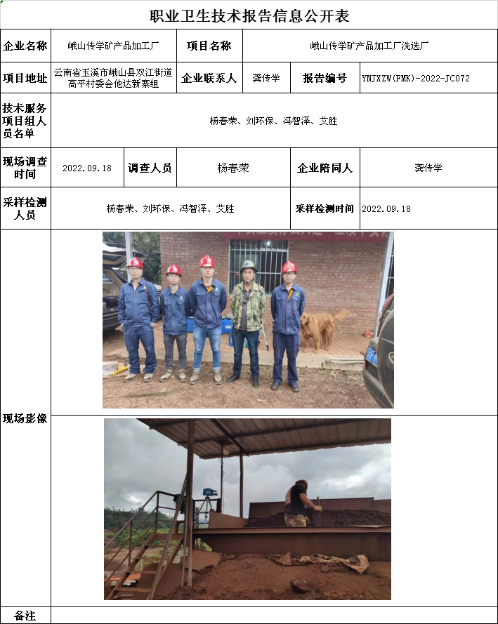 22-職業衛生(shēng)技術(shù)報告信息公開表YNJXZW(FMK)-2022-JC072