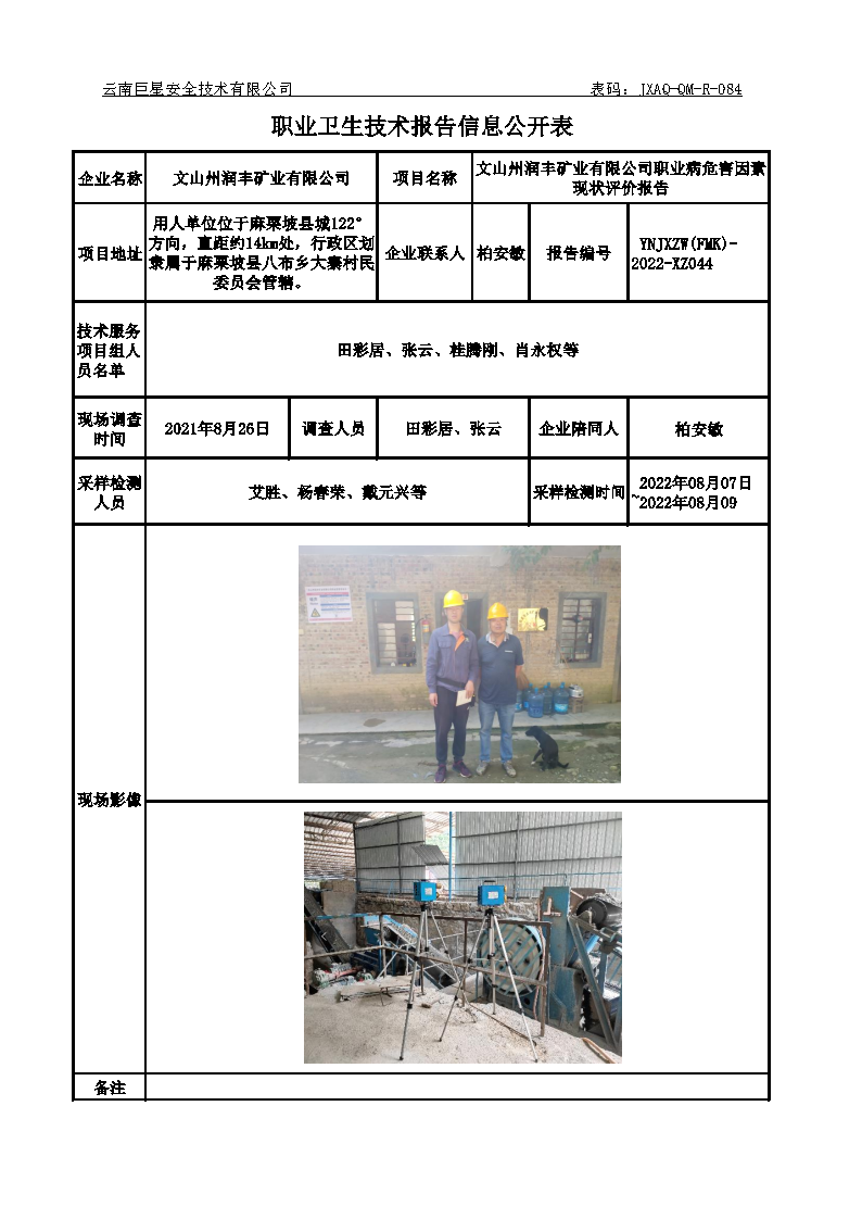 22-職業衛生(shēng)技術(shù)報告信息公開表YNJXZW(FMK)-2022-XZ044