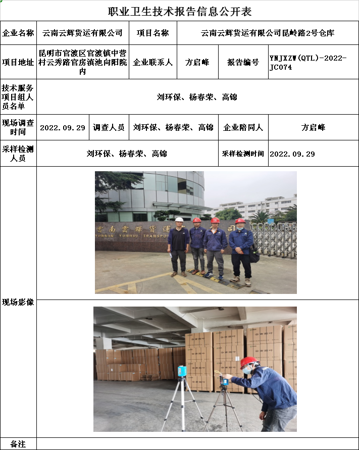 22-職業衛生(shēng)技術(shù)報告信息公開表YNJXZW(QTL)-2022-JC074