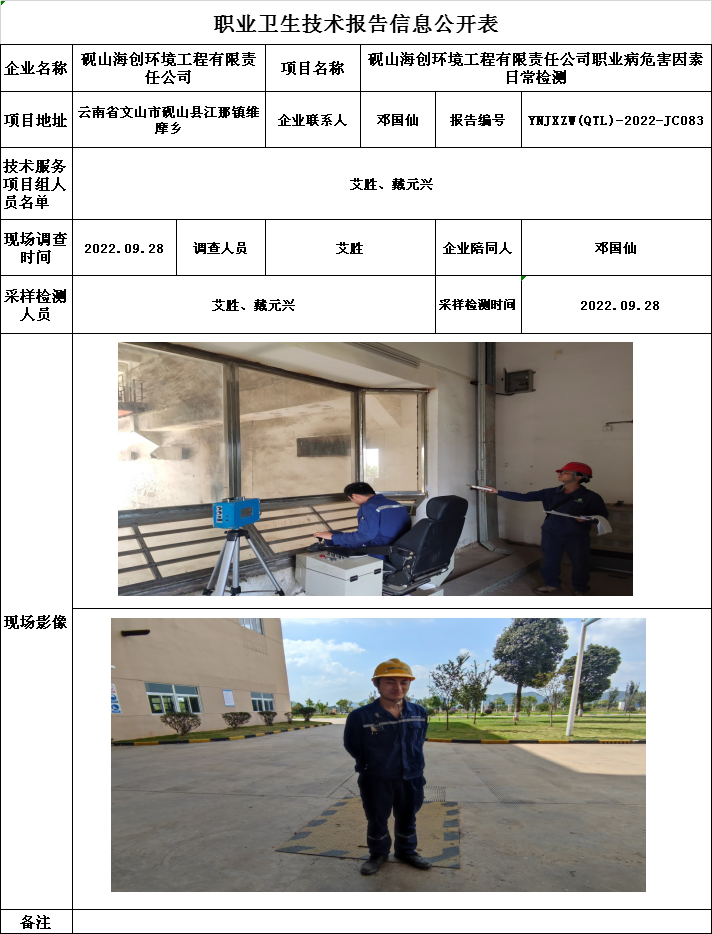 22-職業衛生(shēng)技術(shù)報告信息公開表-YNJXZW(QTL)-2022-JC083