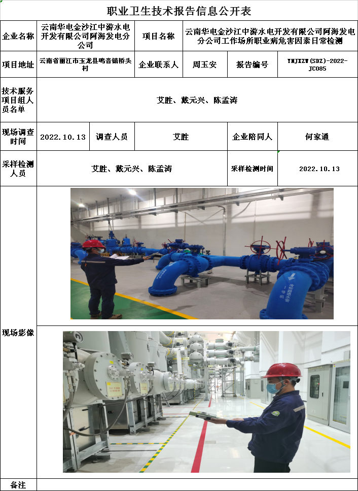 22-職業衛生(shēng)技術(shù)報告信息公開表 -YNJXZW(SDZ)-2022-JC085