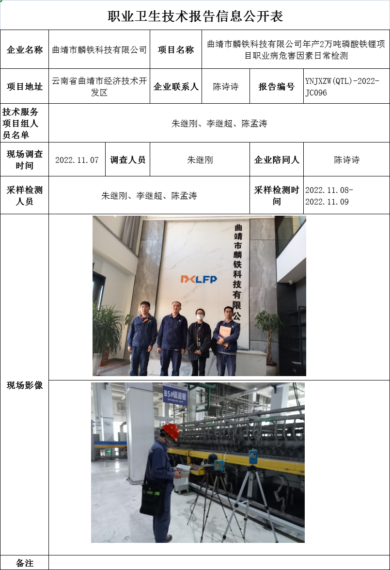22-職業衛生(shēng)技術(shù)報告信息公開表- YNJXZW(QTL)-2022-JC096