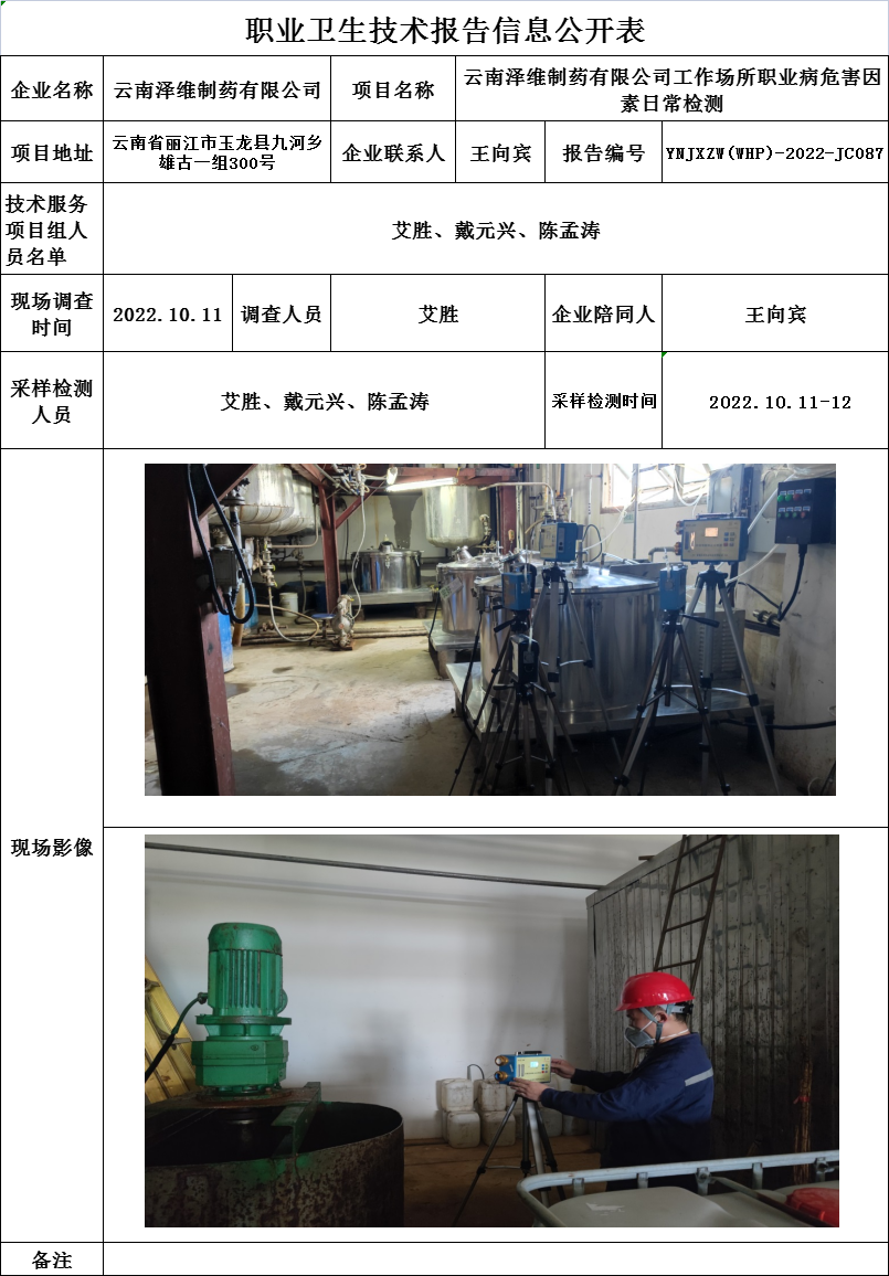 22-職業衛生(shēng)技術(shù)報告信息公開表YNJXZW(WHP)-2022-JC087