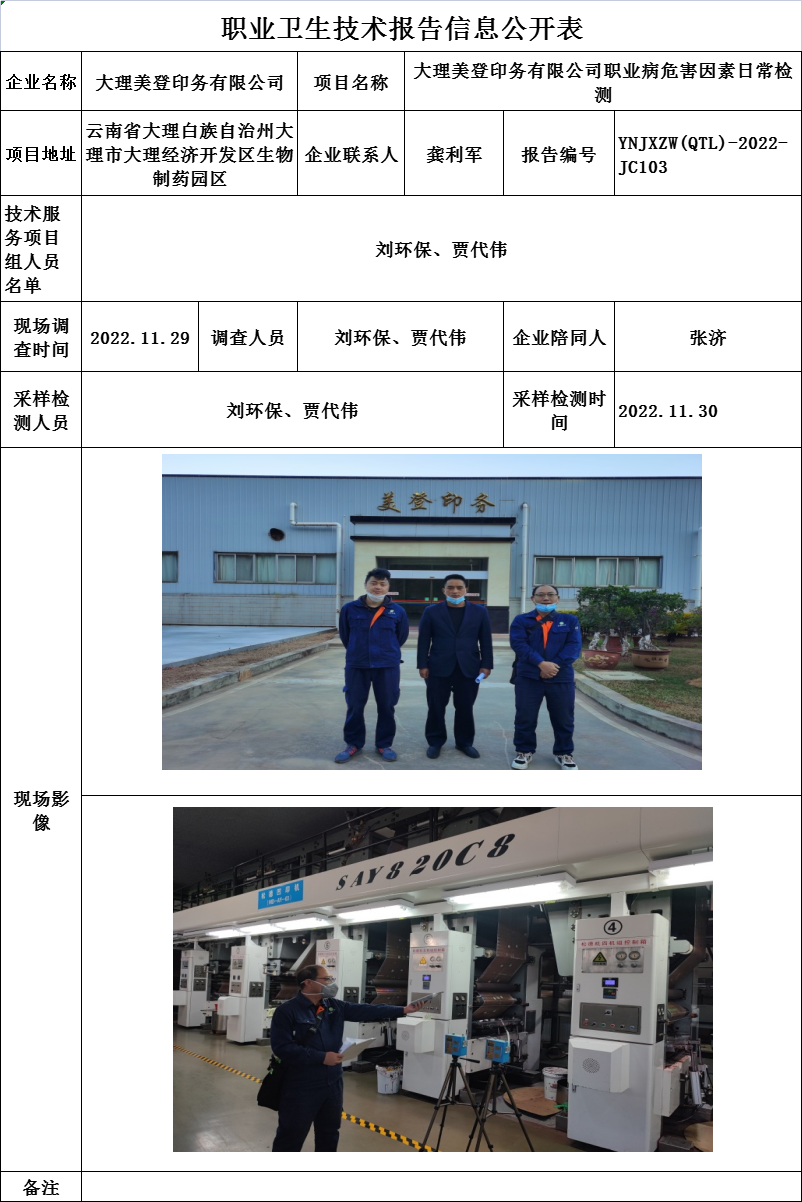 22-職業衛生(shēng)技術(shù)報告信息公開表-YNJXZW(QTL)-2022-JC103