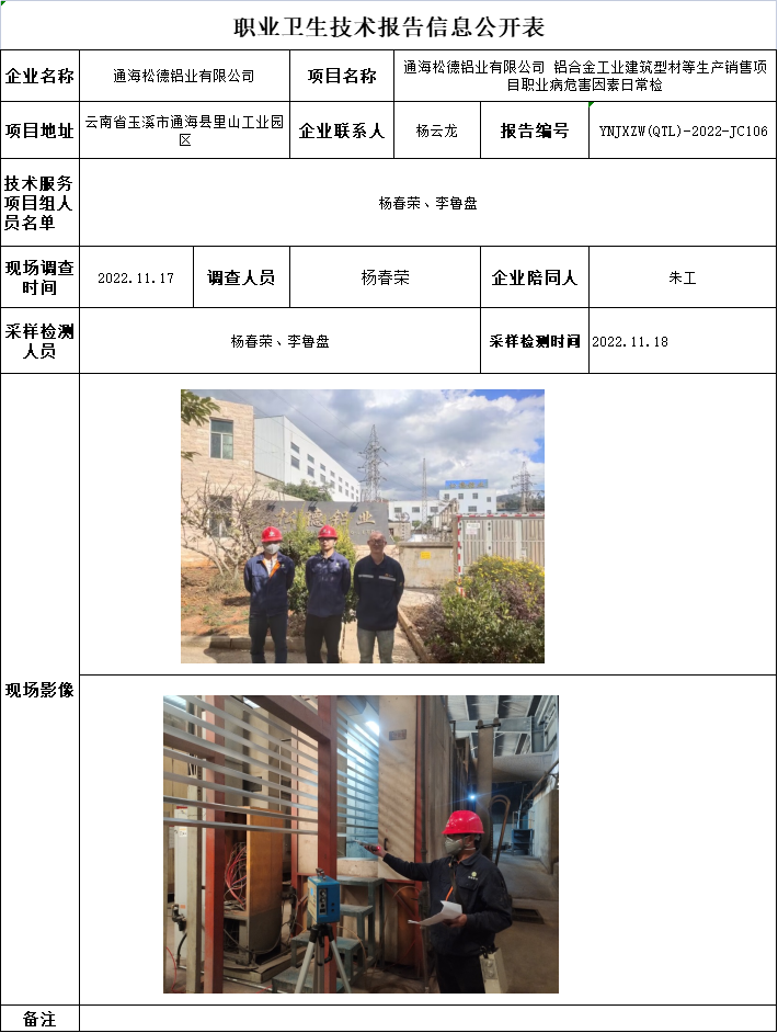 22-職業衛生(shēng)技術(shù)報告信息公開表- YNJXZW(QTL)-2022-JC106