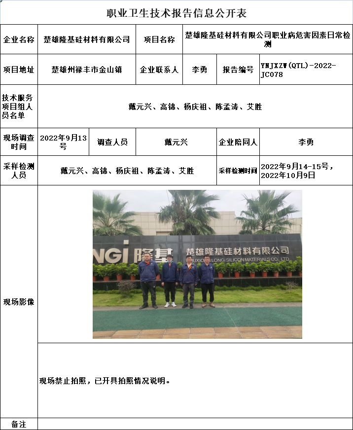 22-職業衛生(shēng)技術(shù)報告信息公開表-YNJXZW(QTL)-2022-JC078