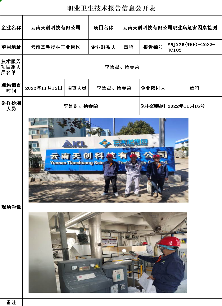 22-職業衛生(shēng)技術(shù)報告信息公開表-YNJXZW(WHP)-2022-JC105