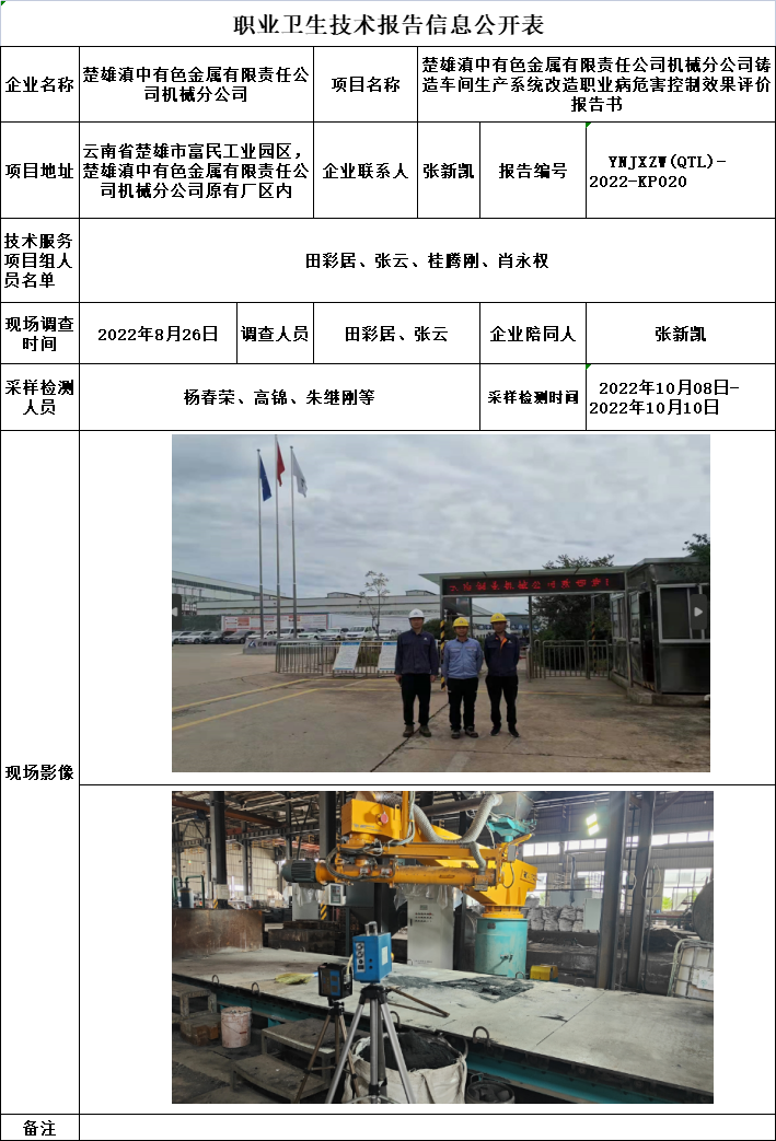 22-職業衛生(shēng)技術(shù)報告信息公開表-YNJXZW(QTL)-2022-KP020