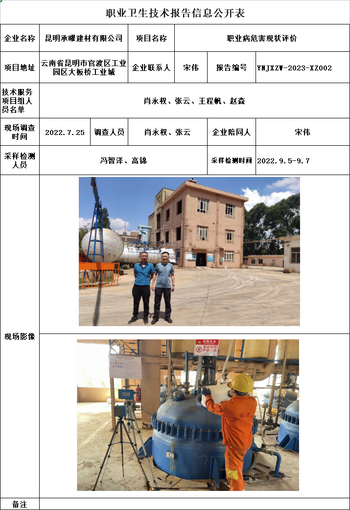 23-職業衛生(shēng)技術(shù)報告信息公開表-YNJXZW-2023-XZ002
