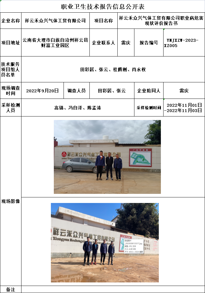 23-職業衛生(shēng)技術(shù)報告信息公開表-YNJXZW-2023-XZ005